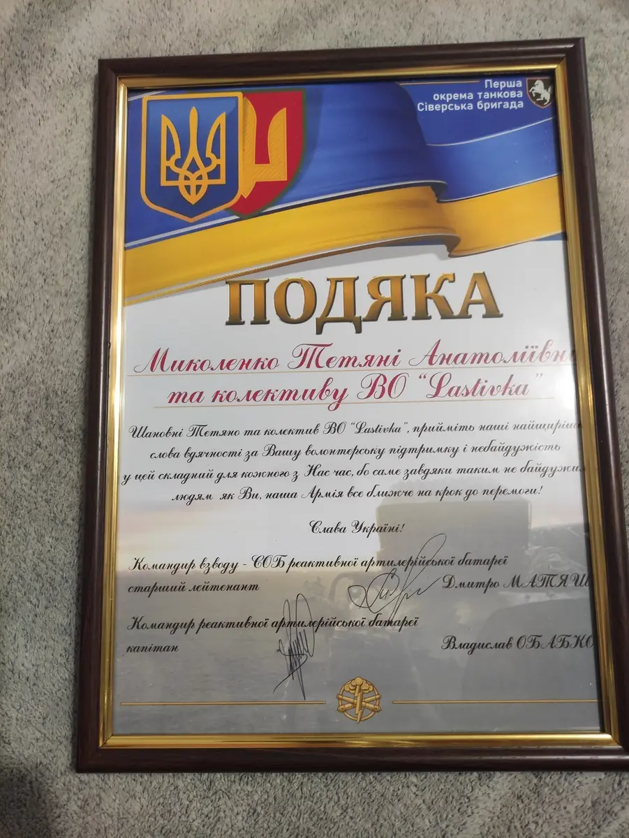 Волонтерське об'єднання "Lastivka" знаходиться в Черкаському районі с. Хацьки. Ми вже 13 місяців плетемо професійне маскування з високоякісних матеріалів. Для основи купуємо капронову нитку товщиною 1,8 мм, плетемо лише флізеліном з піксельним малюнком та захистом від сонячних променів. За цей час виготовили 1800 маскувальних сіток різного розміру, загальною площею більше 60 000 м². Співпрацюємо з представниками багатьох бригад ЗСУ та маскуємо танки, автомобільну техніку, зброю, ППО, в тому числі і IRIS-T, засоби зв'язку і т.д. Працюємо на волонтерських засадах напряму з представниками ЗСУ!!! Намагаємося допомагати всім збройникам, які до нас звертаються та мають потребу в маскувальних сітках.